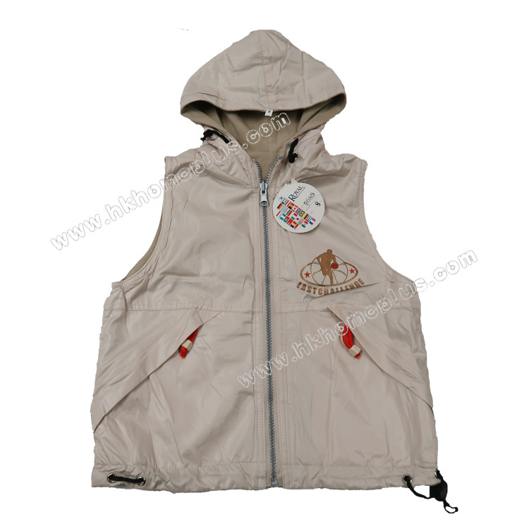 有帽背心可雙面穿著,一面光面卡其色,一面跟套裝顏色,有2個拉鍊前袋,隨時轉換做型
