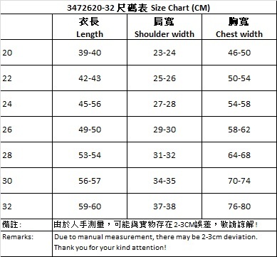Size: 20, 22, 24, 26, 28, 30 and 32